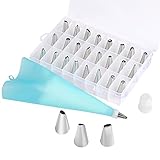 #4: 27-Piece Cake Decorating Tips Kits, OliveTech Professional Stainless Steel Icing Tip Set Tools Includes Reusable 10in Silicone Pastry Bag with 2 Reusable Coupler for Cakes Cupcakes Cookies Pastry